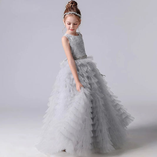 Dideyttawl Customized Long Girls Formal Princess Gown Tiered Flower Girl Dresses For Wedding Party Tulle Junior Bridesmaid Dress